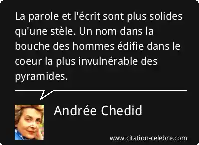La parole et l'écrit sont plus solides qu'une stèle. Un nom dans la bouche des hommes édifie dans le coeur la plus invulnérable des pyramides.