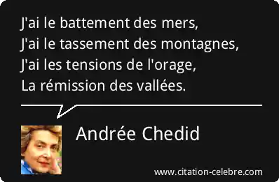 J'ai le battement des mers,J'ai le tassement des montagnes,J'ai les tensions de l'orage,La rémission des vallées.