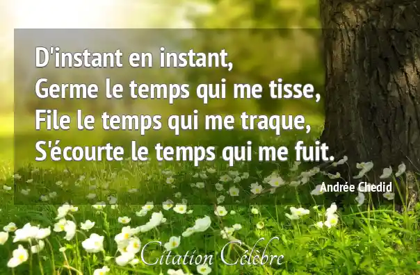 D'instant en instant,Germe le temps qui me tisse,File le temps qui me traque,S'écourte le temps qui me fuit.
