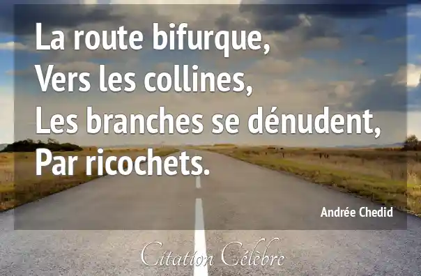 La route bifurque,Vers les collines,Les branches se dénudent,Par ricochets.
