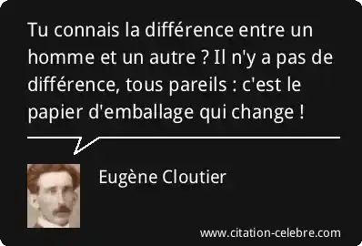 Tu connais la différence entre un homme et un autre ? Il n'y a pas de différence, tous pareils : c'est le papier d'emballage qui change !