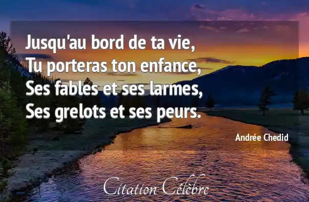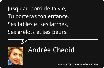 Jusqu'au bord de ta vie,Tu porteras ton enfance,Ses fables et ses larmes,Ses grelots et ses peurs.