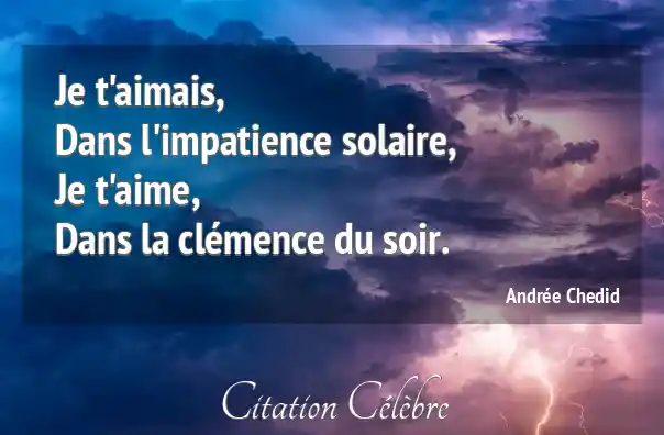Je t'aimais,Dans l'impatience solaire,Je t'aime,Dans la clémence du soir.