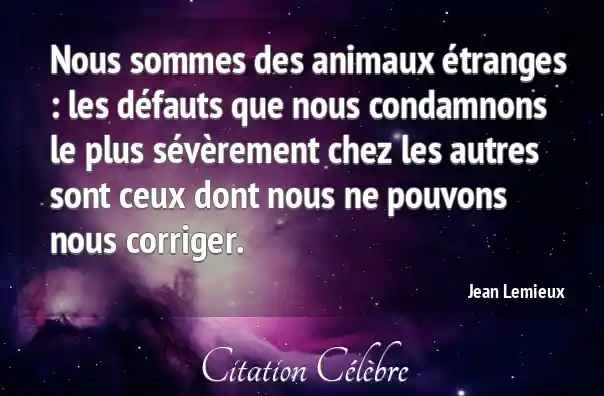 Nous sommes des animaux étranges : les défauts que nous condamnons le plus sévèrement chez les autres sont ceux dont nous ne pouvons nous corriger.