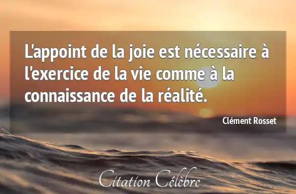 L'appoint de la joie est nécessaire à l'exercice de la vie comme à la connaissance de la réalité.