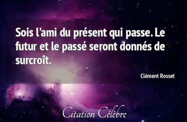 Sois l'ami du présent qui passe. Le futur et le passé seront donnés de surcroît.