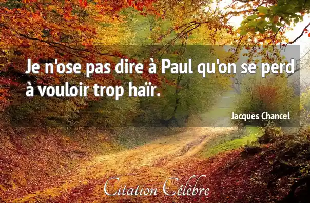 Je n'ose pas dire à Paul qu'on se perd à vouloir trop haïr.
