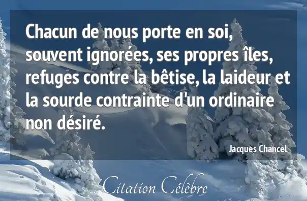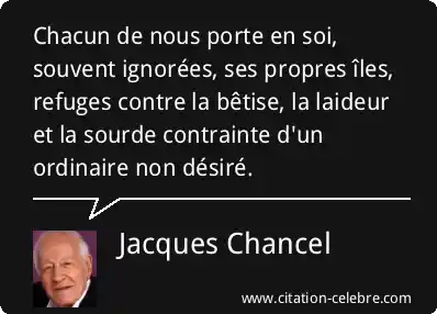 Chacun de nous porte en soi, souvent ignorées, ses propres îles, refuges contre la bêtise, la laideur et la sourde contrainte d'un ordinaire non désiré.
