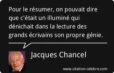 Pour le résumer, on pouvait dire que c'était un illuminé qui dénichait dans la lecture des grands écrivains son propre génie.