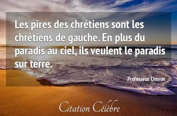 Les pires des chrétiens sont les chrétiens de gauche. En plus du paradis au ciel, ils veulent le paradis sur terre.
