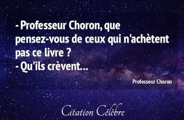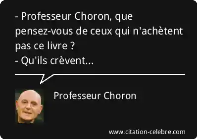 - Professeur Choron, que pensez-vous de ceux qui n'achètent pas ce livre ?- Qu'ils crèvent...