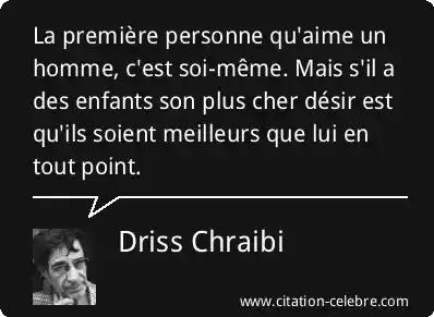 La première personne qu'aime un homme, c'est soi-même. Mais s'il a des enfants son plus cher désir est qu'ils soient meilleurs que lui en tout point.