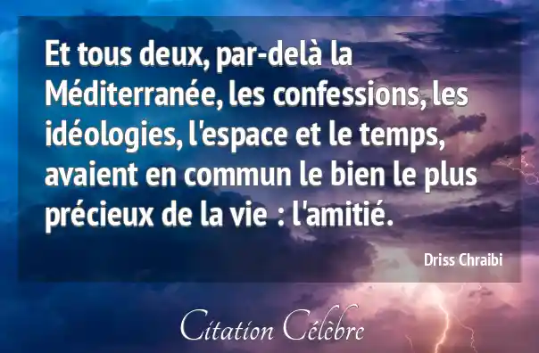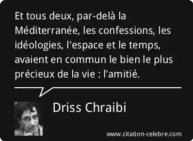 Et tous deux, par-delà la Méditerranée, les confessions, les idéologies, l'espace et le temps, avaient en commun le bien le plus précieux de la vie : l'amitié.