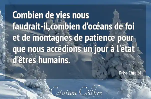 Combien de vies nous faudrait-il,combien d'océans de foi et de montagnes de patience pour que nous accédions un jour à l'état d'êtres humains.