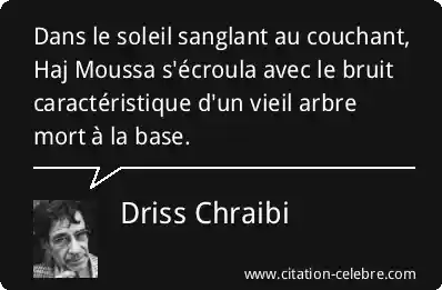 Dans le soleil sanglant au couchant, Haj Moussa s'écroula avec le bruit caractéristique d'un vieil arbre mort à la base.
