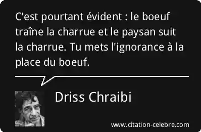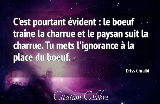 C'est pourtant évident : le boeuf traîne la charrue et le paysan suit la charrue. Tu mets l'ignorance à la place du boeuf.