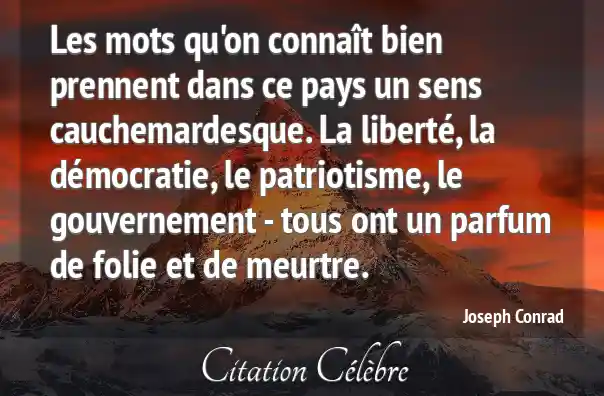 Les mots qu'on connaît bien prennent dans ce pays un sens cauchemardesque. La liberté, la démocratie, le patriotisme, le gouvernement - tous ont un parfum de folie et de meurtre.