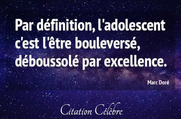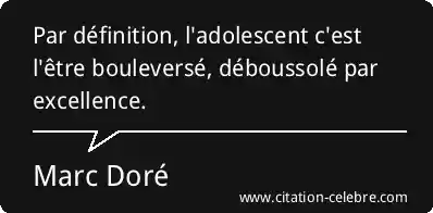 Par définition, l'adolescent c'est l'être bouleversé, déboussolé par excellence.