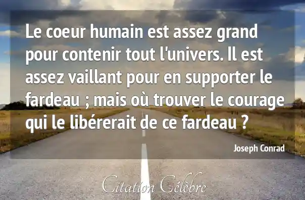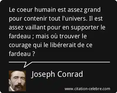 Le coeur humain est assez grand pour contenir tout l'univers. Il est assez vaillant pour en supporter le fardeau ; mais où trouver le courage qui le libérerait de ce fardeau ?