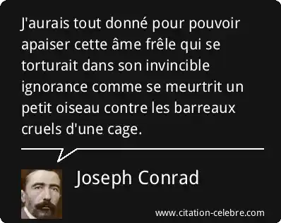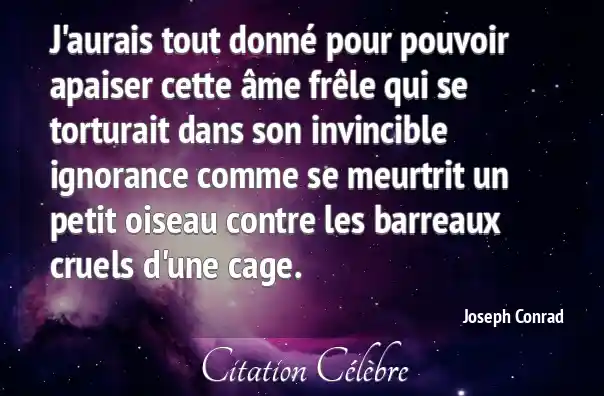 J'aurais tout donné pour pouvoir apaiser cette âme frêle qui se torturait dans son invincible ignorance comme se meurtrit un petit oiseau contre les barreaux cruels d'une cage.