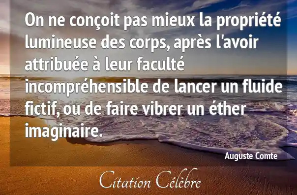 On ne conçoit pas mieux la propriété lumineuse des corps, après l'avoir attribuée à leur faculté incompréhensible de lancer un fluide fictif, ou de faire vibrer un éther imaginaire.