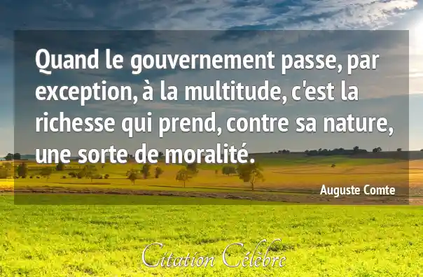 Quand le gouvernement passe, par exception, à la multitude, c'est la richesse qui prend, contre sa nature, une sorte de moralité.