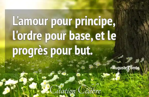 L'amour pour principe, l'ordre pour base, et le progrès pour but.