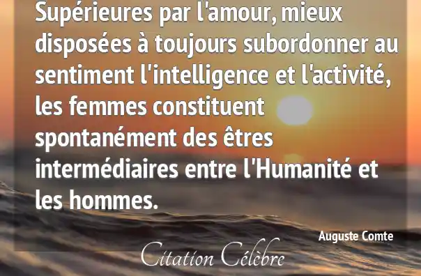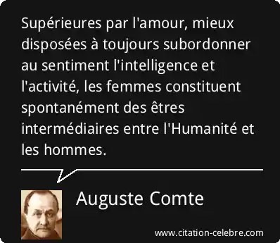 Supérieures par l'amour, mieux disposées à toujours subordonner au sentiment l'intelligence et l'activité, les femmes constituent spontanément des êtres intermédiaires entre l'Humanité et les hommes.