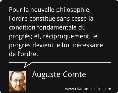 Pour la nouvelle philosophie, l'ordre constitue sans cesse la condition fondamentale du progrès; et, réciproquement, le progrès devient le but nécessaire de l'ordre.