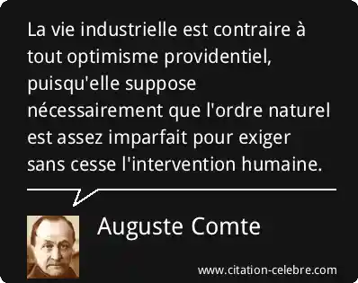 La vie industrielle est contraire à tout optimisme providentiel, puisqu'elle suppose nécessairement que l'ordre naturel est assez imparfait pour exiger sans cesse l'intervention humaine.