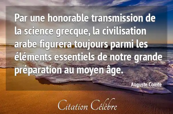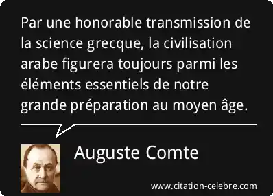 Par une honorable transmission de la science grecque, la civilisation arabe figurera toujours parmi les éléments essentiels de notre grande préparation au moyen âge.