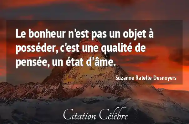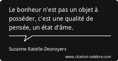 Le bonheur n'est pas un objet à posséder, c'est une qualité de pensée, un état d'âme.
