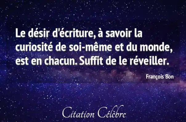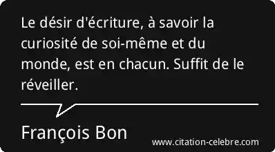 Le désir d'écriture, à savoir la curiosité de soi-même et du monde, est en chacun. Suffit de le réveiller.
