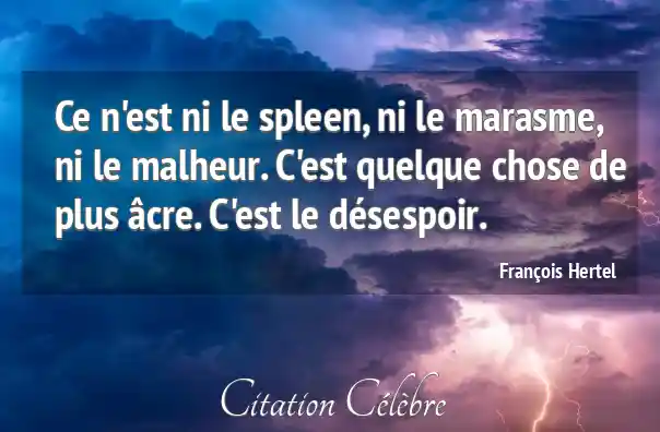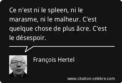 Ce n'est ni le spleen, ni le marasme, ni le malheur. C'est quelque chose de plus âcre. C'est le désespoir.