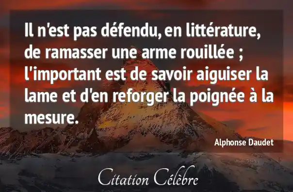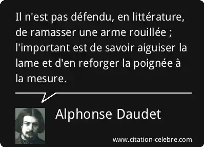 Il n'est pas défendu, en littérature, de ramasser une arme rouillée ; l'important est de savoir aiguiser la lame et d'en reforger la poignée à la mesure.