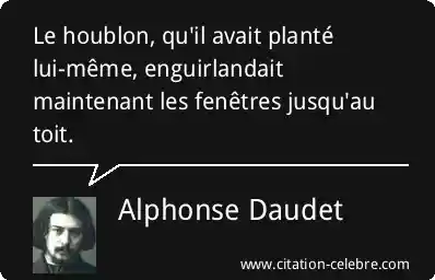Le houblon, qu'il avait planté lui-même, enguirlandait maintenant les fenêtres jusqu'au toit.