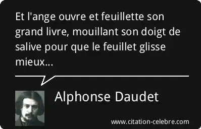 Et l'ange ouvre et feuillette son grand livre, mouillant son doigt de salive pour que le feuillet glisse mieux...
