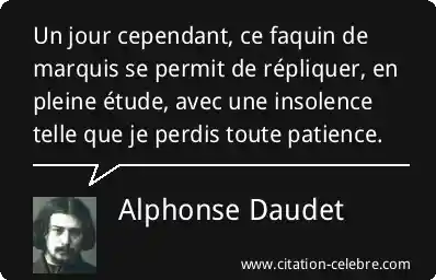 Un jour cependant, ce faquin de marquis se permit de répliquer, en pleine étude, avec une insolence telle que je perdis toute patience.