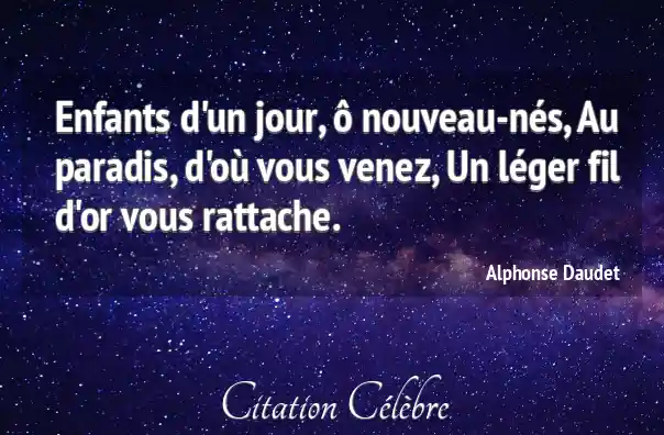 Enfants d'un jour, ô nouveau-nés, Au paradis, d'où vous venez, Un léger fil d'or vous rattache.