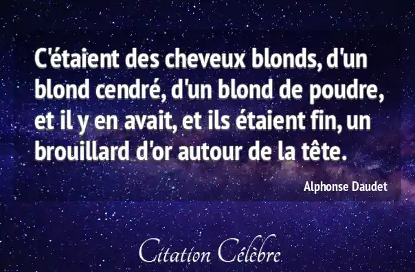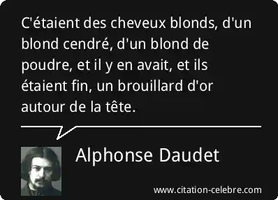 C'étaient des cheveux blonds, d'un blond cendré, d'un blond de poudre, et il y en avait, et ils étaient fin, un brouillard d'or autour de la tête.