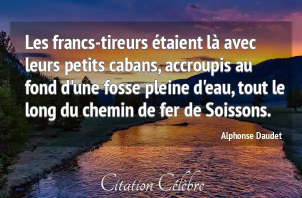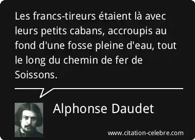 Les francs-tireurs étaient là avec leurs petits cabans, accroupis au fond d'une fosse pleine d'eau, tout le long du chemin de fer de Soissons.