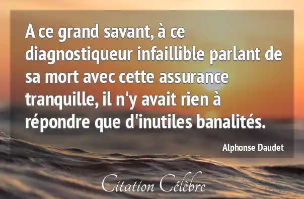 A ce grand savant, à ce diagnostiqueur infaillible parlant de sa mort avec cette assurance tranquille, il n'y avait rien à répondre que d'inutiles banalités.