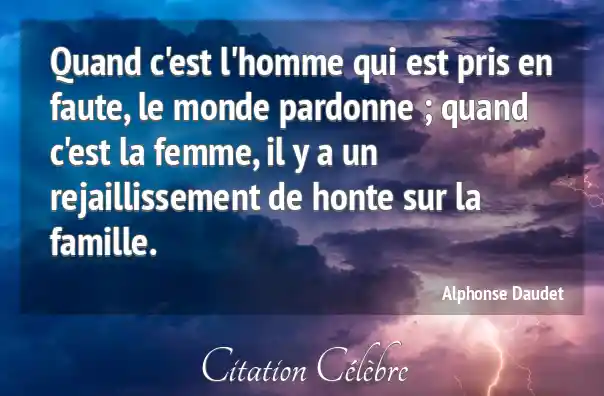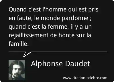 Quand c'est l'homme qui est pris en faute, le monde pardonne ; quand c'est la femme, il y a un rejaillissement de honte sur la famille.