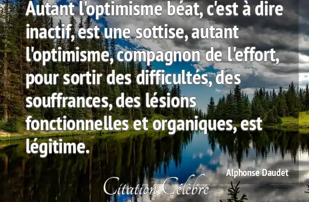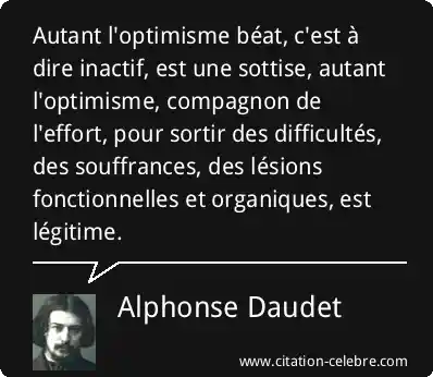 Autant l'optimisme béat, c'est à dire inactif, est une sottise, autant l'optimisme, compagnon de l'effort, pour sortir des difficultés, des souffrances, des lésions fonctionnelles et organiques, est légitime.