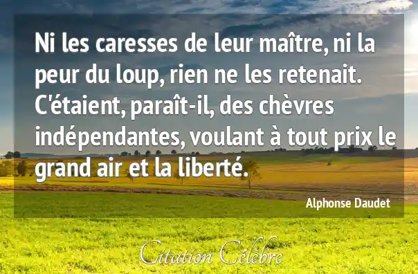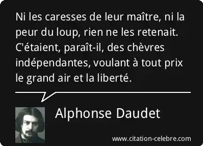 Ni les caresses de leur maître, ni la peur du loup, rien ne les retenait. C'étaient, paraît-il, des chèvres indépendantes, voulant à tout prix le grand air et la liberté.