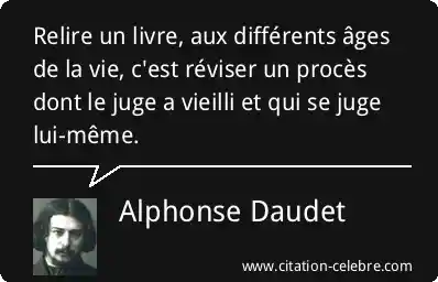 Relire un livre, aux différents âges de la vie, c'est réviser un procès dont le juge a vieilli et qui se juge lui-même.