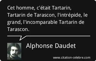 Cet homme, c'était Tartarin, Tartarin de Tarascon, l'intrépide, le grand, l'incomparable Tartarin de Tarascon.