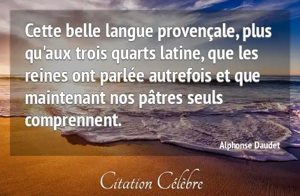 Cette belle langue provençale, plus qu'aux trois quarts latine, que les reines ont parlée autrefois et que maintenant nos pâtres seuls comprennent.