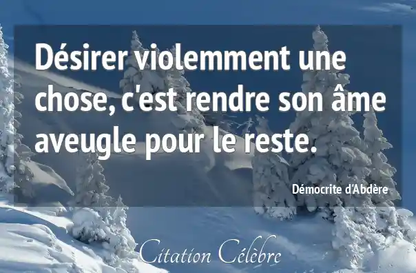Citation Démocrite d'Abdère chose : Désirer violemment une chose, c'est rendre son âme aveugle pour...