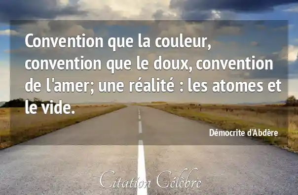 Convention que la couleur, convention que le doux, convention de l'amer; une réalité : les atomes et le vide.